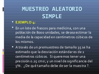 El muestreo aleatorio simple es un método de muestreo fundamental y puede ser fácilmente un componente de un método de muestreo más complejo. El principal atributo de este método de muestreo es que cada muestra tiene la misma probabilidad de ser elegido.