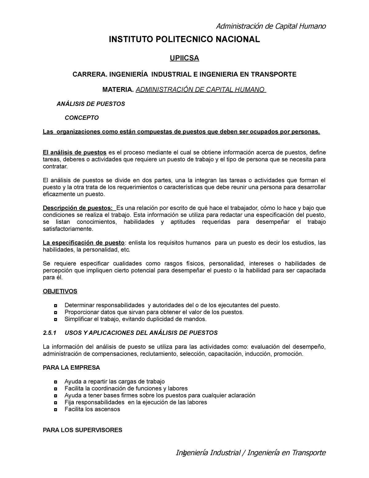 ¿Qué es lo que debe llevar un análisis de puestos?