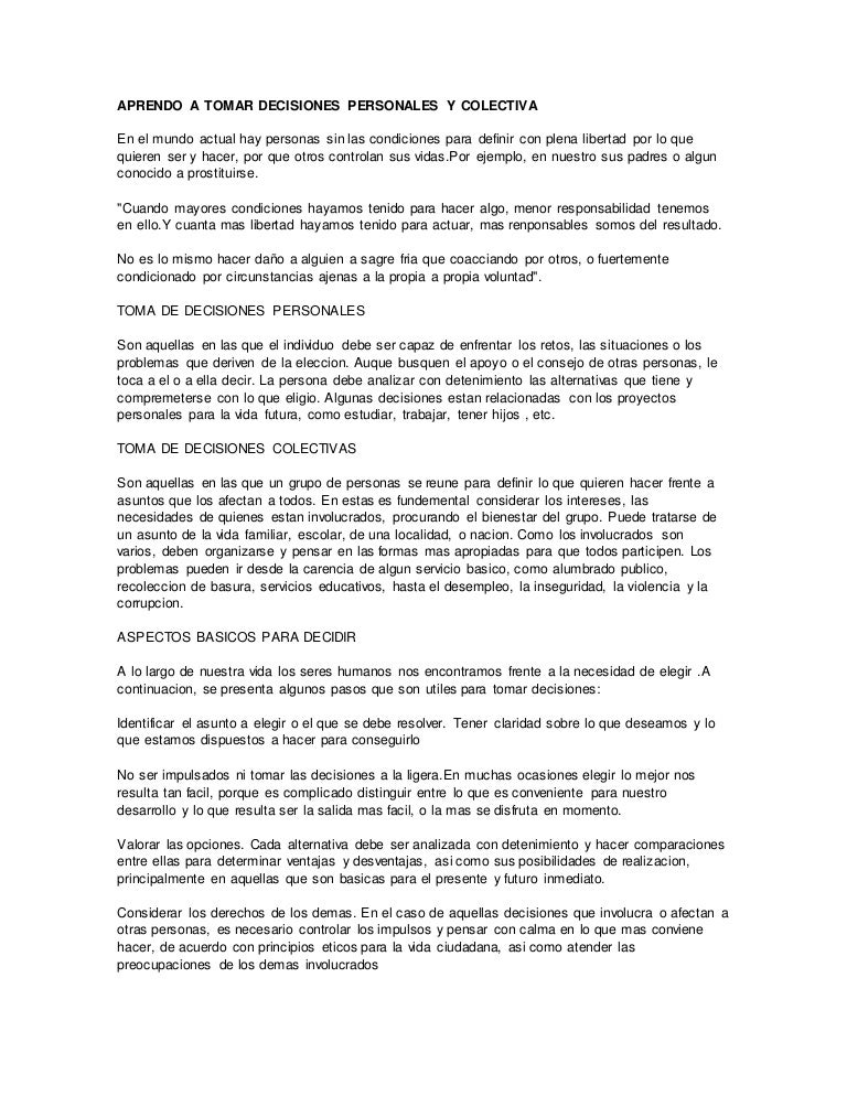 ¿Qué es la toma de decisiones personales y colectivas?