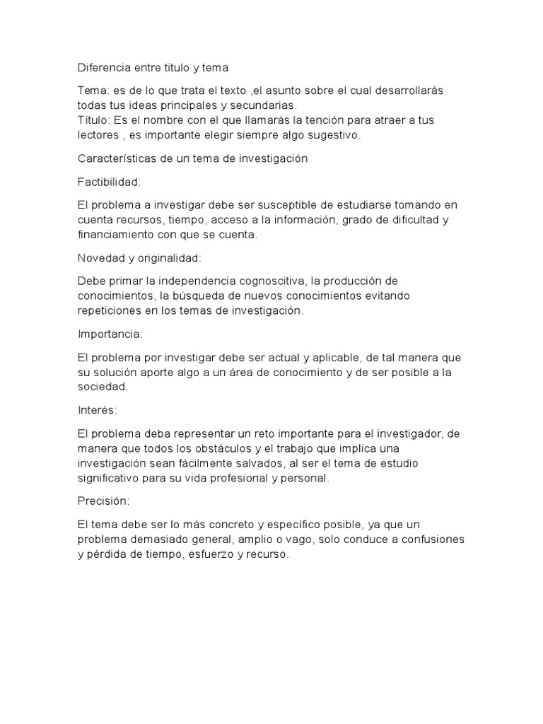 ¿Cuál es la diferencia entre una oración temática y un título (tema)? Una oración temática es una oración dentro de un párrafo…. Es del cuerpo principal de un párrafo. Una oración temática siempre es un pensamiento completo, mientras que un título (tema) generalmente no es un pensamiento completo.