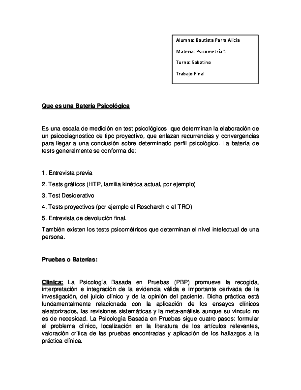 Este informe será un resumen de sus observaciones del cliente durante las pruebas, las respuestas dadas a los estímulos de prueba y sus interpretaciones de esas respuestas. El informe debe tiparse, a doble espacio y de 3 a 5 páginas de longitud. Divida el papel en las siguientes secciones utilizando estos encabezados: