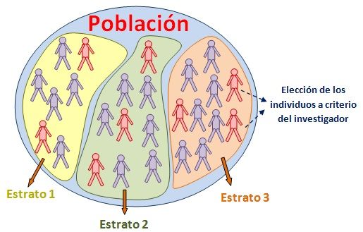 Algunos ejemplos son estas características son género, edad, sexo, residencia, nivel de educación o ingresos. Una vez que se forman los subgrupos, los investigadores usarán su propio juicio para seleccionar los sujetos de cada segmento para producir la muestra final.