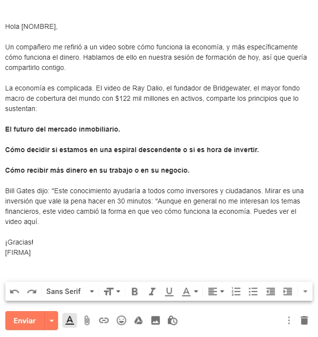 • Un correo electrónico de seguimiento al cliente después de enviar una propuesta