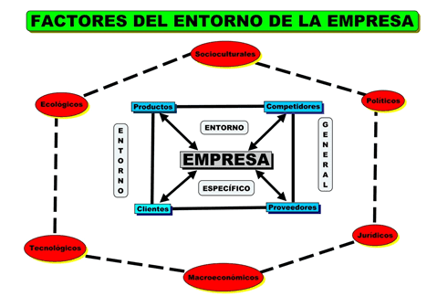 El entorno interno señala los factores internos de la empresa, que a menudo son de naturaleza constitucional. Por otro lado, el entorno externo está compuesto por aquellos factores que son exteriores a la empresa.