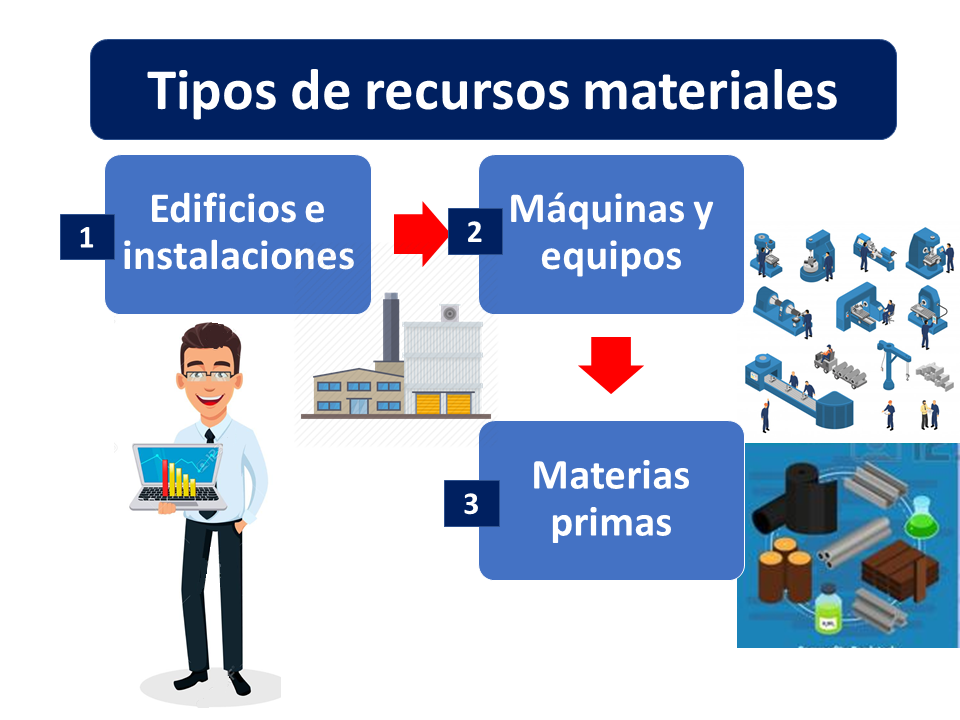 Hay cuatro tipos principales de recursos, incluidos los recursos materiales. Estos son: