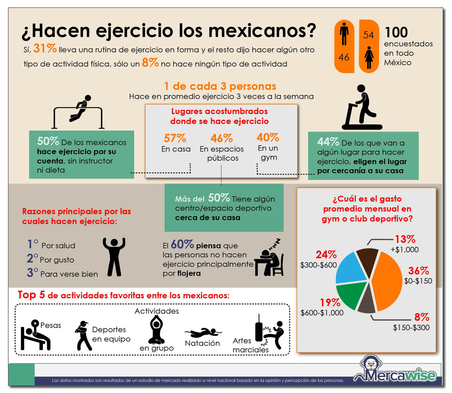 Entre los que informaron que nunca hicieron ejercicio, el 54.1% eran mujeres y el 45.8% eran hombres. En promedio, las mujeres preferían regímenes de ejercicio más ligero con una frecuencia de 1-2 entrenamientos por semana.