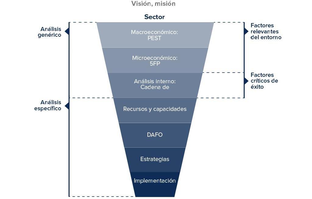 El análisis es una etapa clave porque la información obtenida en esta etapa configurará las siguientes dos etapas. En esta etapa, recopile información y datos relevantes para lograr su visión. El enfoque del análisis estratégico debe ser comprender las necesidades comerciales como una entidad sostenible, con iniciativas estratégicas e identificadas que ayudarán al negocio a crecer.