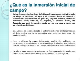 En los años que he estado haciendo una investigación etnográfica, he descubierto que algunos etnógrafos tienden a evitar investigar problemas que involucran una inmersión profunda. Claramente, hay una diferencia entre lo que se denomina participante-observador y observador-participante; Sin embargo, también he descubierto que tomar posiciones en medio de la vida de otros para observar realmente y comprenderles alguna forma de inmersión profunda. Con este tipo de inmersión, el etnógrafo puede ver desde el interior cómo viven las personas, cómo llevan a cabo sus rutinas diarias, qué encuentran significativo y por qué. Algunos investigadores creen que la inmersión profunda tiene la tendencia a disolver las impresiones iniciales y las sensibilidades de muerte a patrones sutiles que hacen que el etnógrafo pierda información sobre las experiencias, significados y preocupaciones. Muchos creen que esto compromete o contamina los datos objetivos en lugar de proporcionar información sobre procesos significativos. A diferencia de tales puntos de vista, la inmersión profunda puede proporcionar al investigador de campo un método para asimilarse más profundamente en el estilo de vida porque el investigador no aprende todo a la vez sino en un proceso constante y continuo en el que uno construye una visión y comprensión de la vida de otros durante un período prolongado.