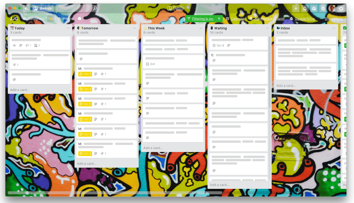 En esencia, Trello se basa en los principios de Kanban Project Boards para visualizar los flujos de trabajo, proporcionando a los gerentes y a los miembros del equipo una visión general simple de un proyecto de principio a fin.