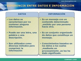 - Los datos por sí solos no tienen importancia, mientras que la información es significativa por sí misma.
