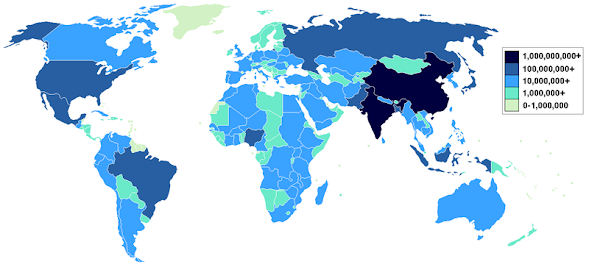 Debido a la evolución histórica y al clima, la mayor parte de la población mundial vive en el hemisferio norte. Las áreas tradicionalmente fuertes son: Europa templada (Italia, España, Francia…), Asia oriental y sur. Un contraste típico (banda costera/interna y de montaña/áreas lisas).