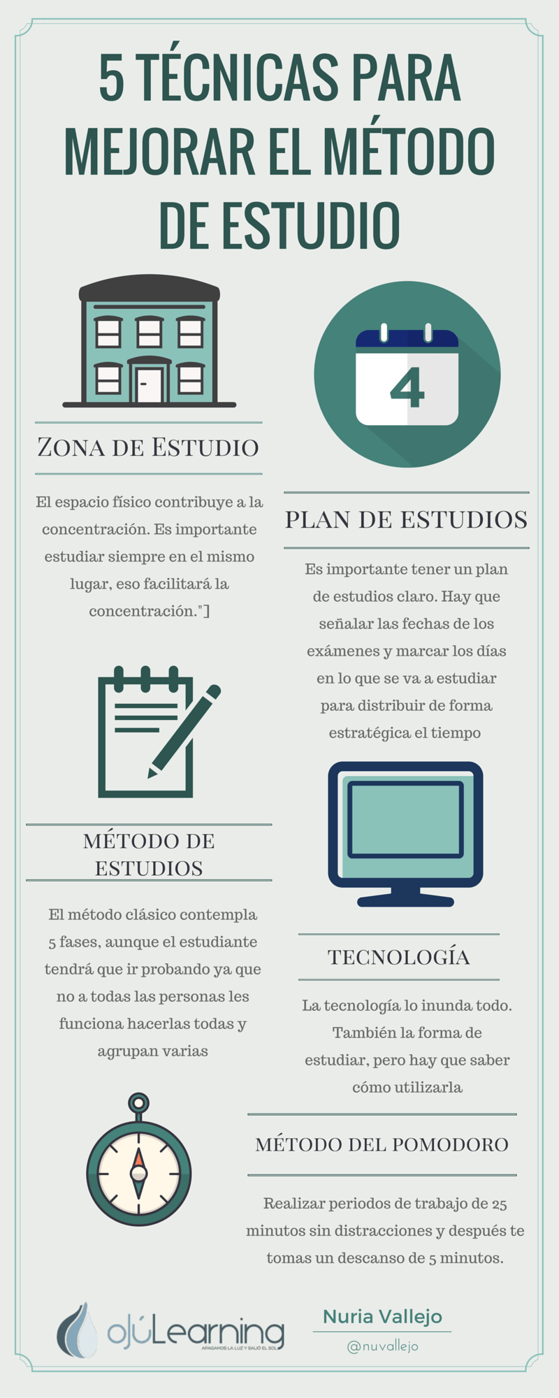 El estudio efectivo requiere un buen ambiente, un lugar adecuado para usted, donde encontrará las mejores condiciones para la concentración óptima, sola o grupal. Luego, conozca los métodos de revisiones que son adecuados para su modo operativo, aquellos que le permitirán adquirir una buena memorización.