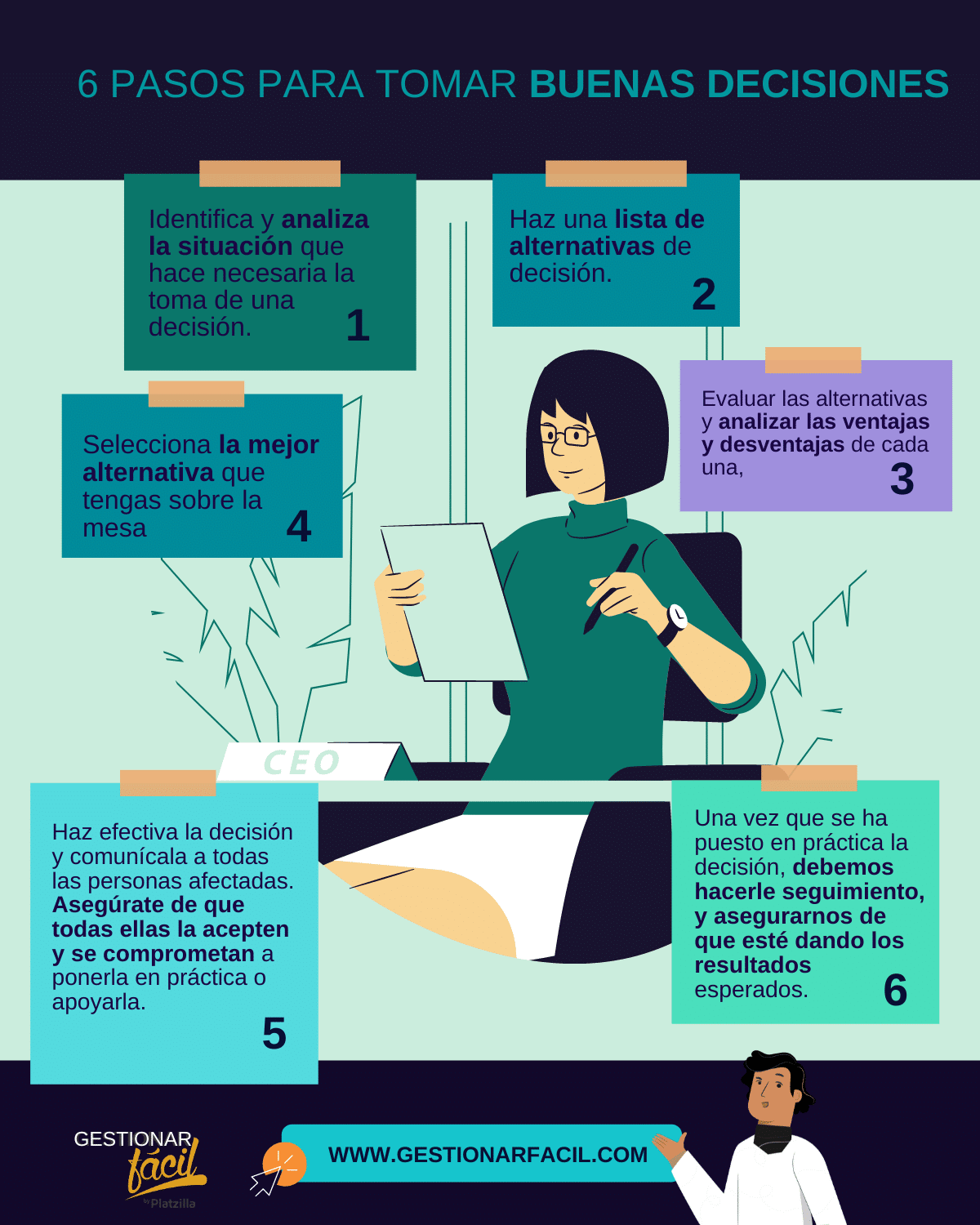 El proceso de toma de decisiones pasa a través de 5 etapas importantes. Están
