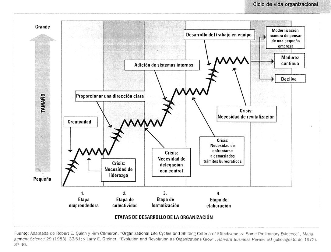El modelo de ciclo de vida organizacional es un modelo de proceso que identifica cómo las organizaciones crecen, maduran y disminuyen con el tiempo. La