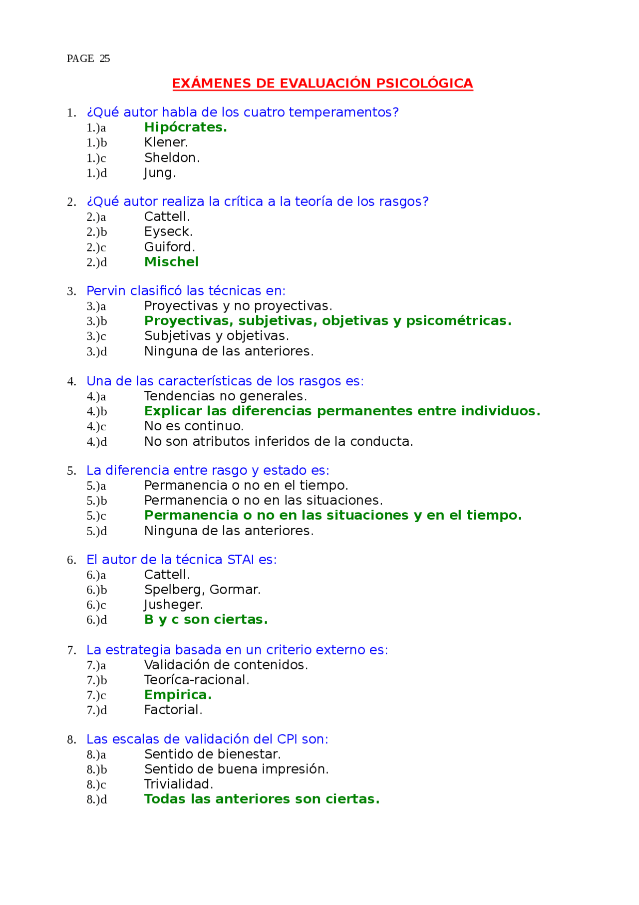 ¿Que entra en el examen de psicologia?