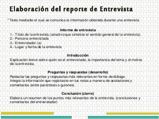 - Las características de un reporte de entrevista que lo convierten en una herramienta de investigación eficaz