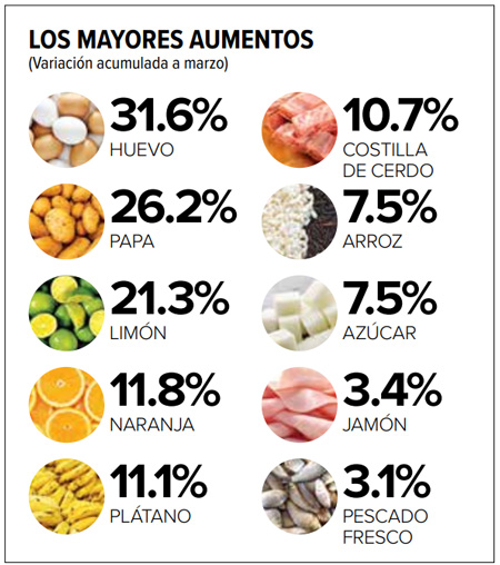 “Se informaron 17 productos de la canasta básica sobre el aumento. En el período de referencia, los productos que reflejaron los mayores aumentos son: naranjas con 98.9 por ciento, papas con 80.9 por ciento, frijoles pintos con 16.5 por ciento y tomates de ensalada con 24 por ciento «, dijo la agencia dirigida por Juan Carlos Anaya.