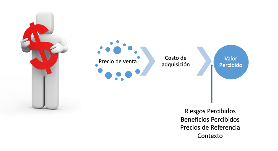 Al observar el esquema, es posible argumentar que la percepción del valor del producto por parte de los consumidores establece el precio máximo al que puede llegar la empresa: si el precio excede ese umbral, los consumidores no adquieren. Los costos del producto, por otro lado, definen el precio mínimo que la compañía debe elegir cubrir los costos y no incurrir en pérdidas.