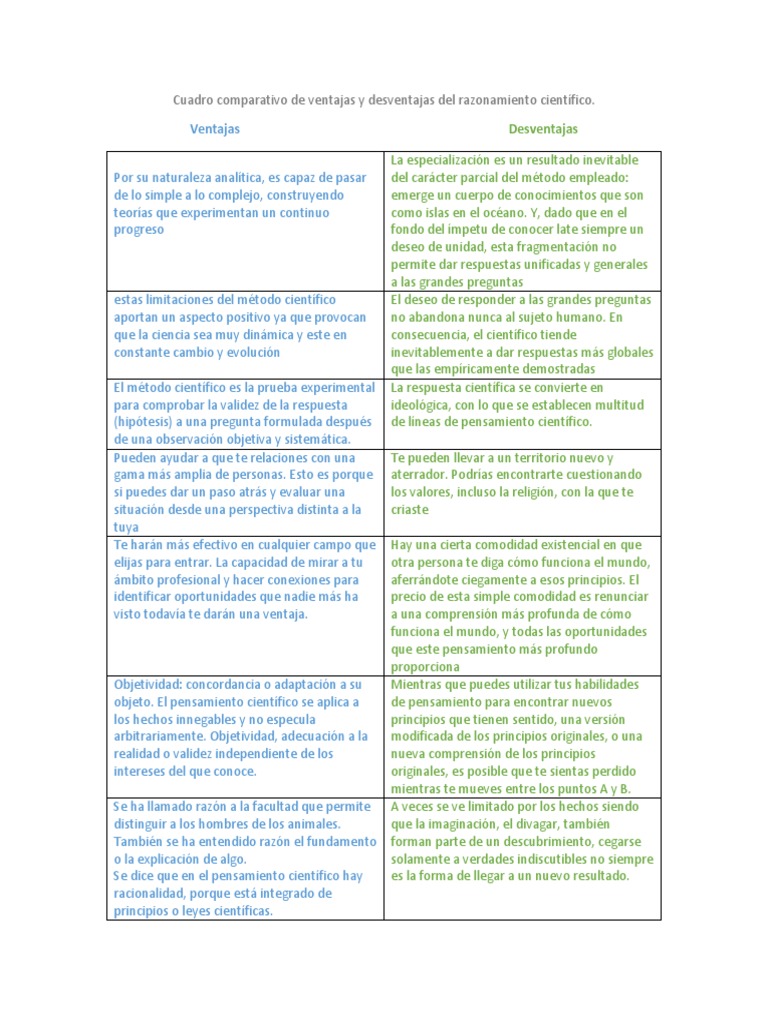 - Ventajas y desventajas del método científico pdf